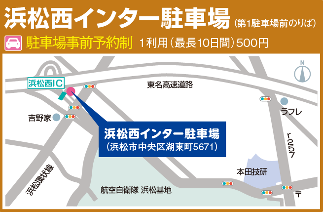 浜松西インターからご乗車のお客様は、駐車場をご利用いただけます。