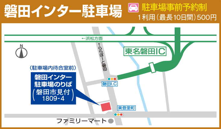 駐車場(浜松インター駐車場、磐田インター駐車場)をご利用される場合についてもご予約が必要です。詳細はこちらよりご確認ください。