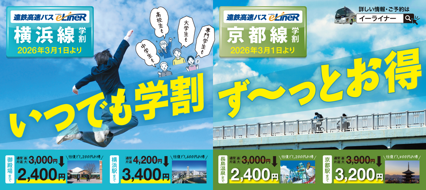 【高速バスe-LineR】学生はいつでもお得に高速バスをご利用できるように!